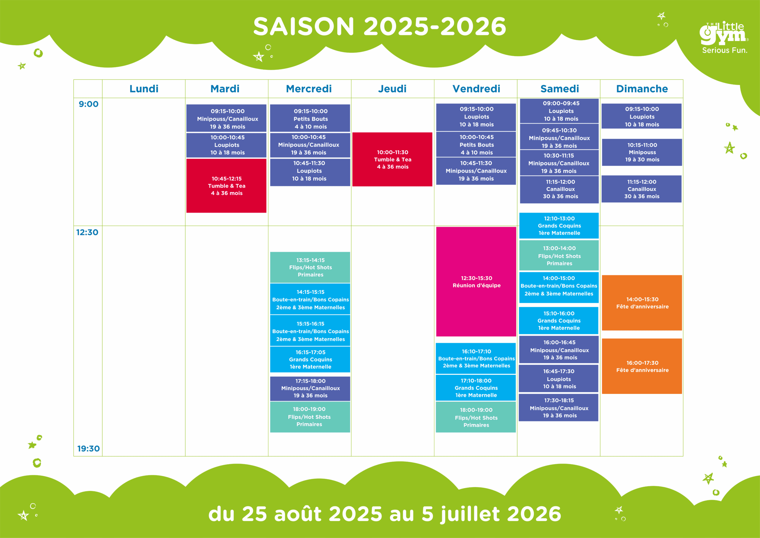 Séances chaque semaine